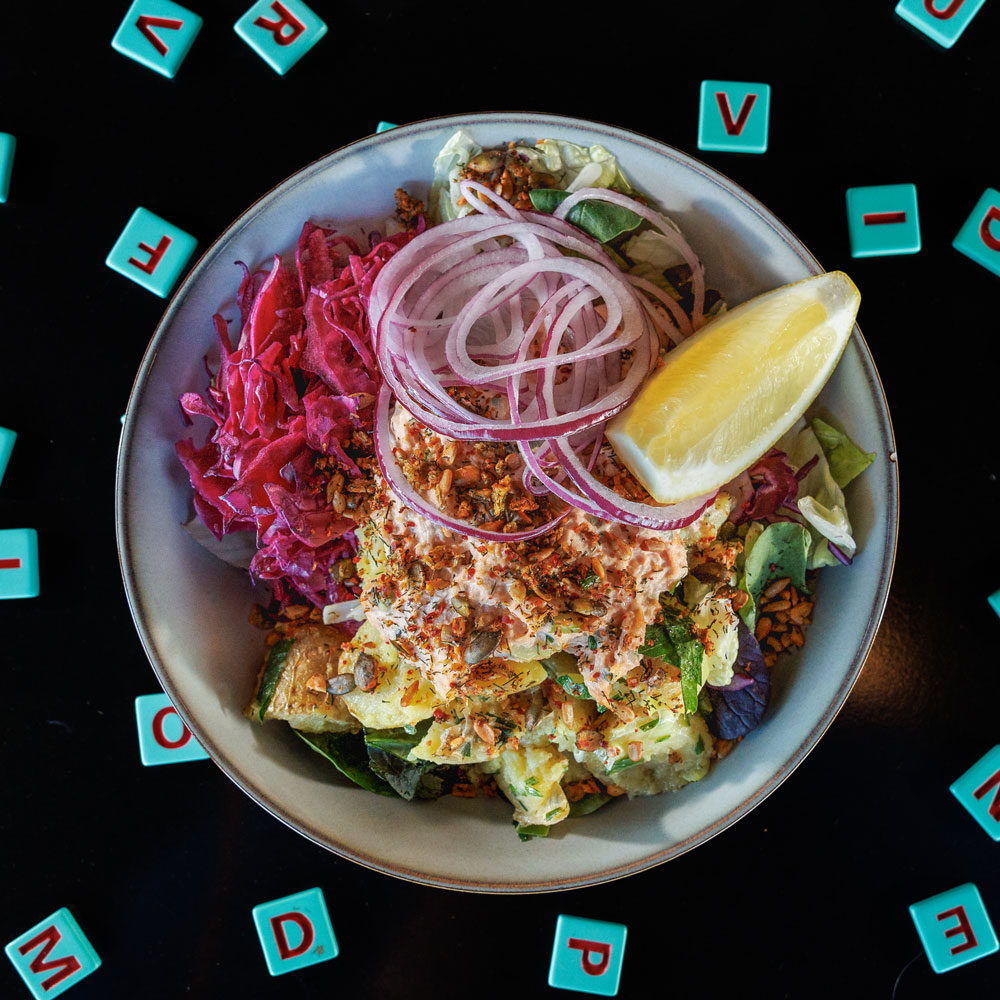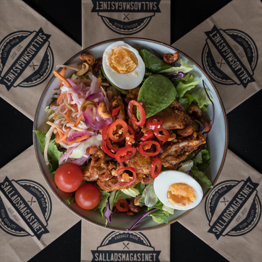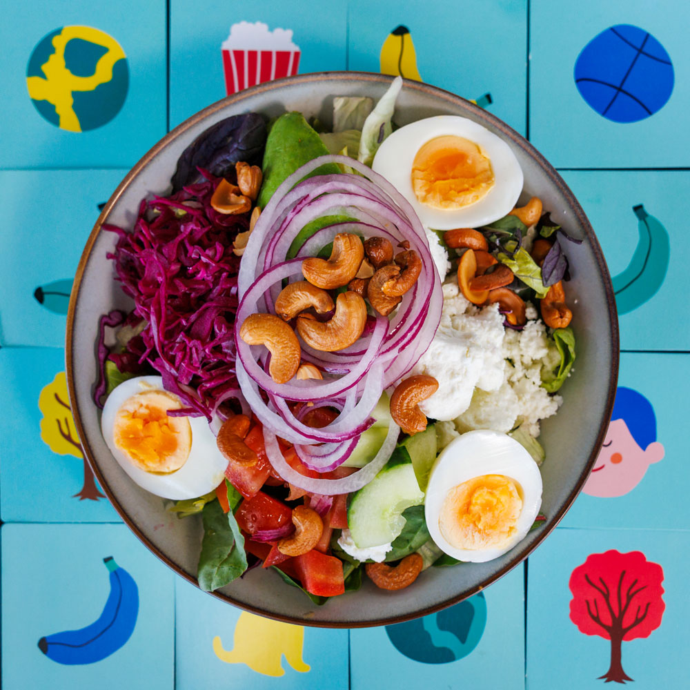 ägg, cocktailtomat, picklad chili, heta cashewnötter
