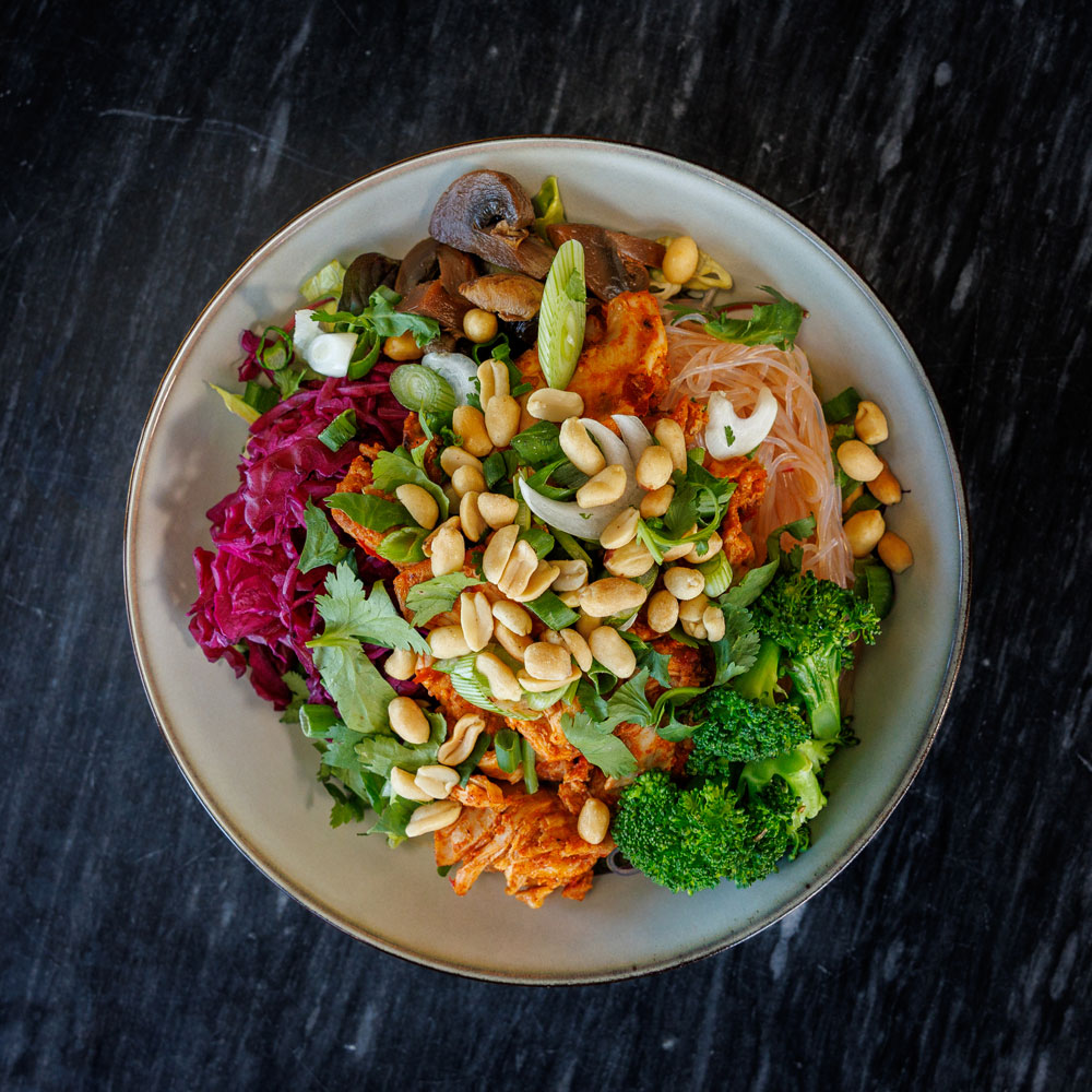 Chili-marinerade kycklinglår, magasinslaw, avokado,